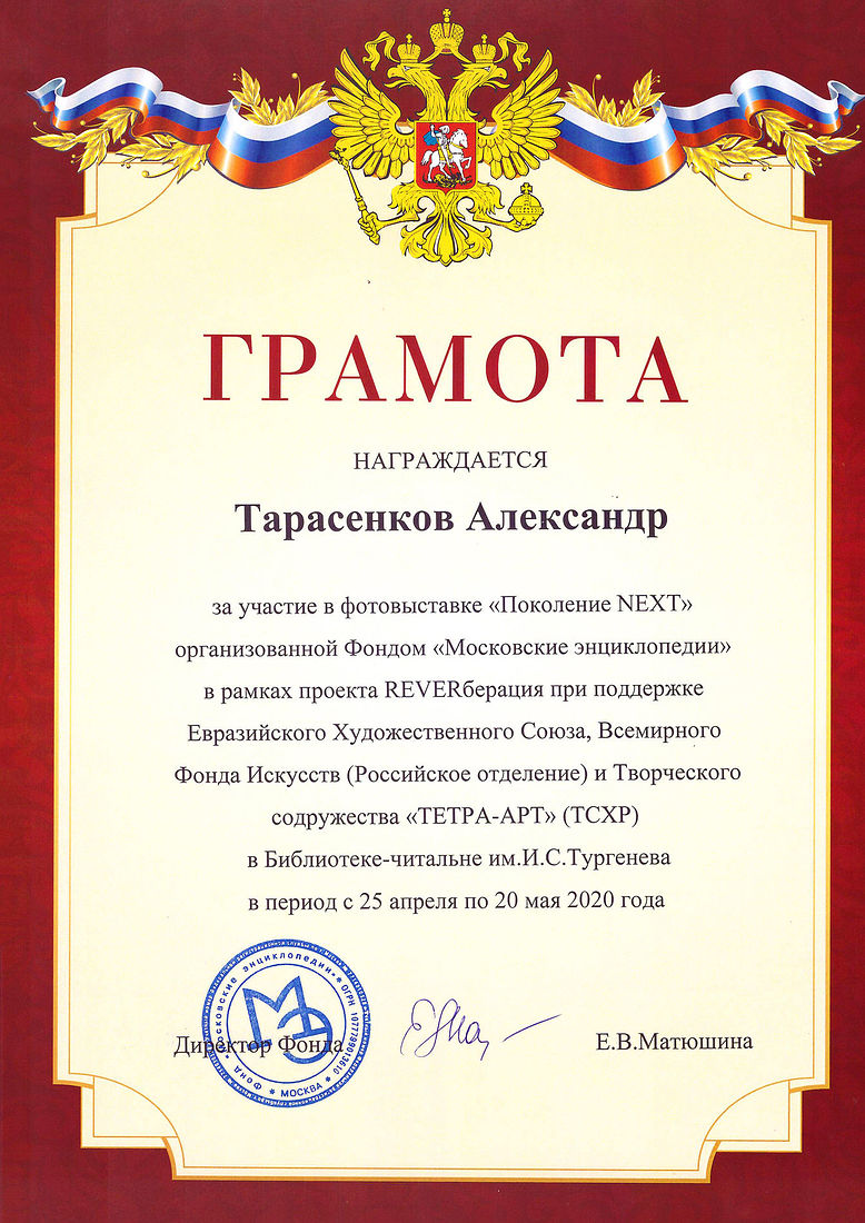 Certificate of a member of the Eurasian Art Union